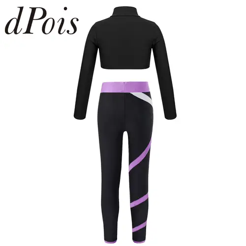 여자 아이 스포츠 의류 세트, 트랙슈트, 키즈 스포츠웨어, 긴 소매 크롭 탑, 체조 운동, 요가 스포츠 슈트