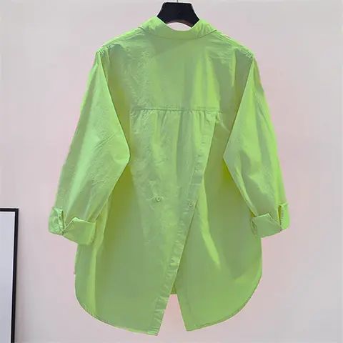 불규칙 백 스플릿 OL 캐주얼 우아한 올 매치 루즈 셔츠 및 블라우스, 트렌드 여성 단색 단추 포켓 셔츠, 젊음 의류