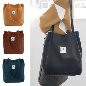 여성용 코듀로이 숄더백, 다목적 핸드백 단색 에코 쇼핑백, 재사용 가능한 토트백, 신상 코튼 천, 2023
