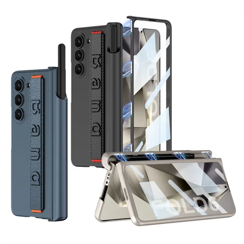 손목 스트랩 포함 펜꽂이 케이스, 삼성 갤럭시 Z 폴드 6 5 4 3 커버, 스크린 유리 펜 슬롯 포함, 갤럭시 Z 폴드 6 하드 케이스