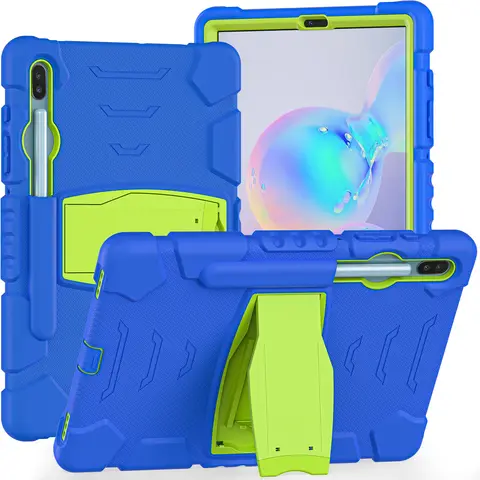 삼성 갤럭시 탭 S6 10.5 인치 2019 SM-T860 SM-T865 T860 T865 케이스 어린이 안전 갑옷 PC 실리콘 하이브리드 스탠드 태블릿 커버 # N
