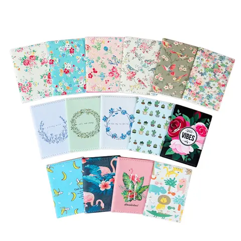 꽃과 식물 여권 커버 여자를위한 PU 가죽 여행 여권 홀더 명함 케이스 비행기 티켓 카드 소지자 여자