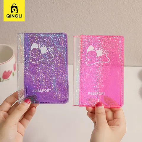 새로운 절묘한 레이저 투명한 여권 커버 여행 액세서리 만화 PVC 반짝 이는 반투명 초박형 여권 홀더