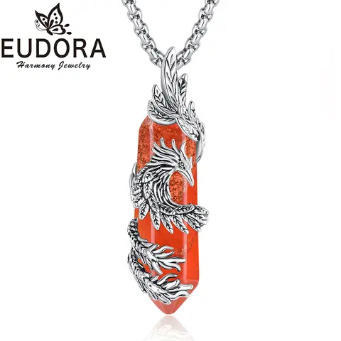유도라 피닉스 트윈닝 육각형 레드 스톤 프리즘 목걸이, 에너지 힐링 스톤 크리스탈 펜던트, 영적인 주얼리, 여성 선물