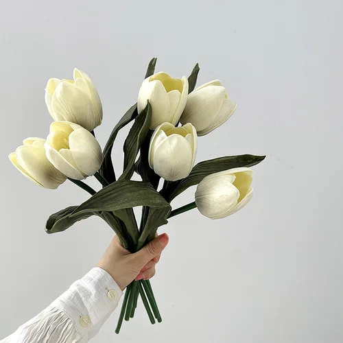 모란디 Pu 튤립 인공 꽃, 가짜 꽃다발, 실내 장식 장식품, 웨딩 핸드 헬드 인공 꽃, 5 개