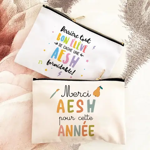 Merci AESH 인쇄 메이크업 가방 여행 세면 용품 주최자 여성 Neceser 화장품 주머니 학교 연필 가방 AESH를위한 최고의 선물
