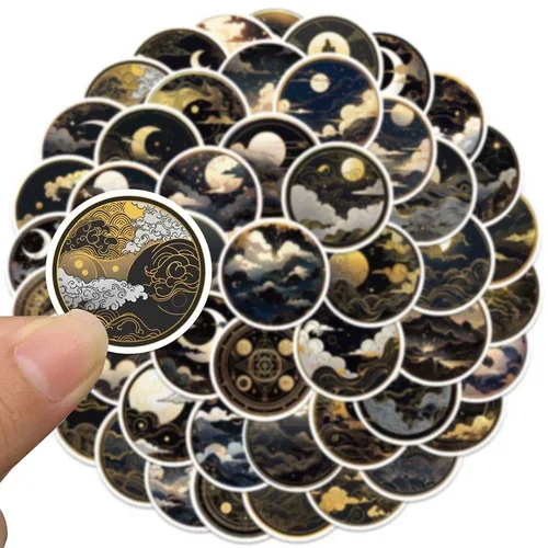 멋진 어두운 황금 태양 달 그래피티 스티커, 미적 만화 아트 데칼, 자동차 노트북 수하물 휴대폰 방수 스티커, 10 개, 50 개